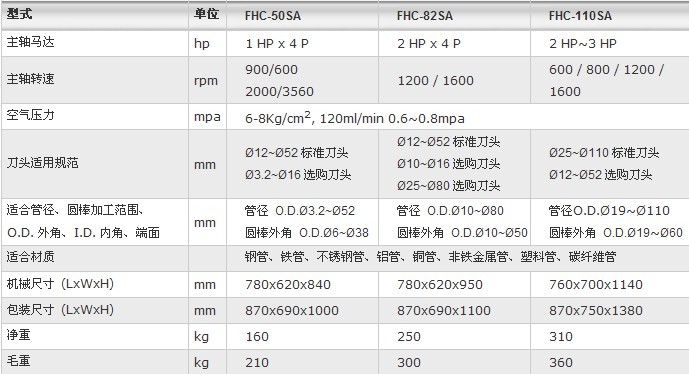眾合鑫FHC-82SA鋼管倒角機(jī)去毛刺加工范圍: